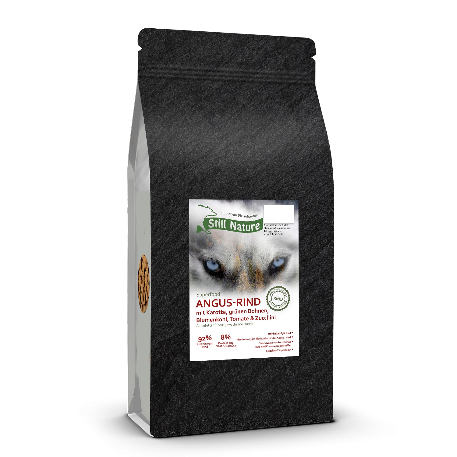 Ein Hund ist in erster Linie ein Fleischfresser. Deswegen sind Ernährungsformen wie das Barfen auch so ideal für ihn. Das getreidefreie Trockenfutter mit Rind von Still Nature bietet aufgrund seines hohen Anteils an tierischen Bestandteilen und frischem Rohfleisch ebenfalls alles, was Dein Hund braucht, um gesund und fit zu bleiben.
