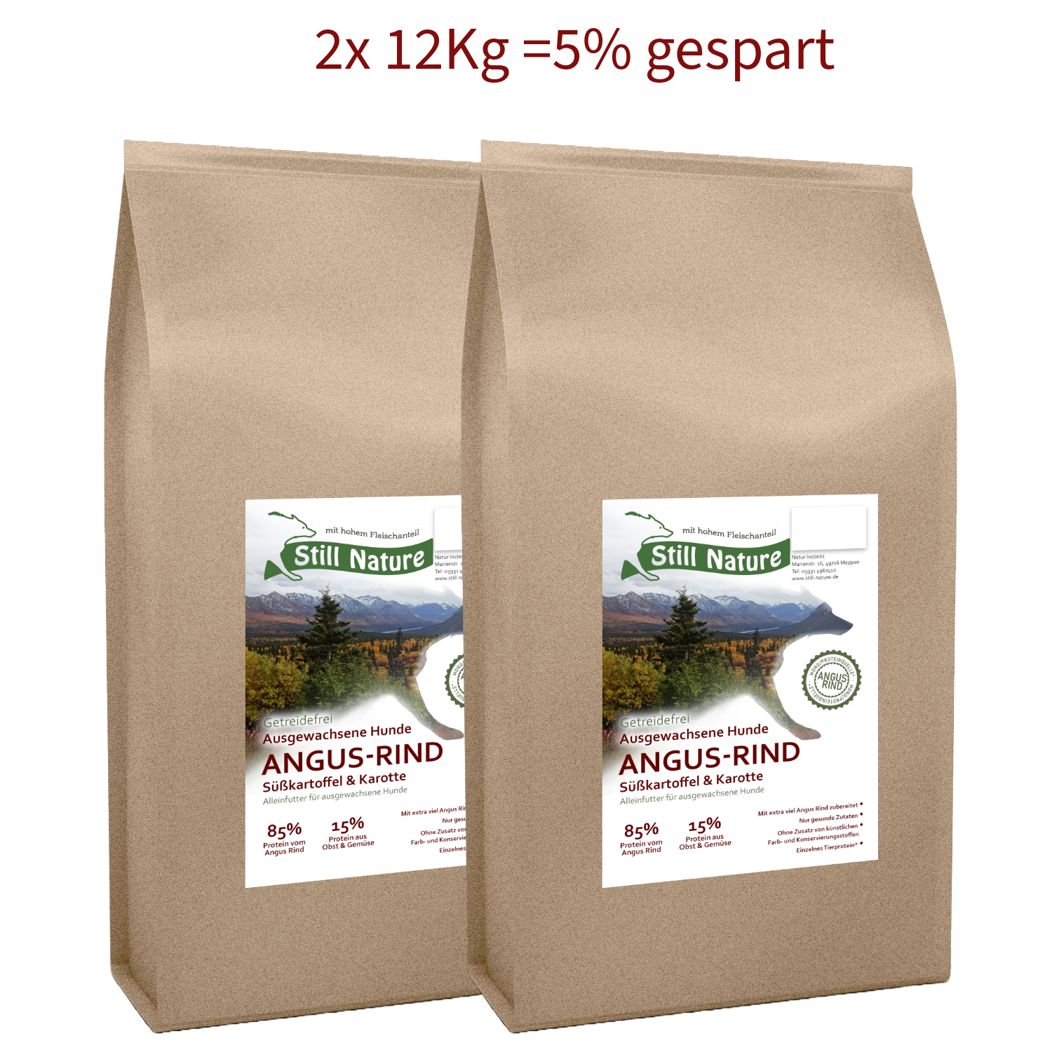 Bei dem Angus Rind mit Süßkartoffeln und Karotten Trockenfutter handelt es sich um eine Single-Proteinsorte. Das Premium-Hundefutter wird ausschließlich aus einer Fleischquelle hergestellt. Nur hochwertiges Rind- und Angusrindfleisch finden ihren Weg in das einzigartige Futter der Marke Still Nature. Süßkartoffeln und Karotten reichern das Trockenfutter an und versorgen Deinen Hund mit wichtigen Nährstoffen. Das Single-Protein-Futter ist besonders gut für Allergiker geeignet und sehr leicht verdaulich. Mit dem Angus Rind mit Süßkartoffeln und Karotten bietest Du Deiner Fellnase jeden Tag aufs Neue ein hervorragendes Trockenfutter in Premiumqualität. Vertraue auf die hochwertige Qualität unseres Hundefutters.