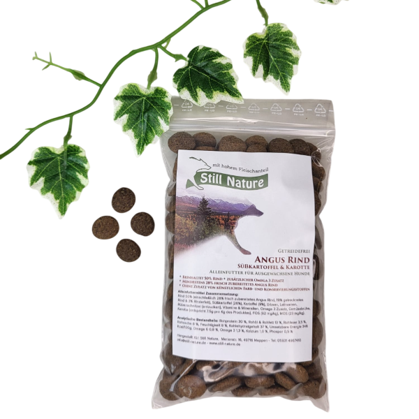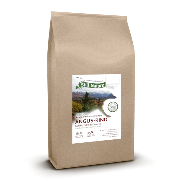 Du suchst ein einzigartiges Trockenfutter für Deinen geliebten Vierbeiner? Dann ist das Angus Rind mit Süßkartoffeln und Karotten Trockenfutter die richtige Wahl.