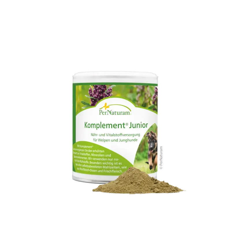 Mit Komplement Junior ergänzen Sie den erhöhten Bedarf an Vitalstoffen, Mineralien und Spurenelementen. Wir verwenden nur natürliche Rohstoffe. Besonders wichtig ist es bei allen selbstzubereiteten Mahlzeiten, wie aus Reinfleisch-Dosen und Frischfleisch.