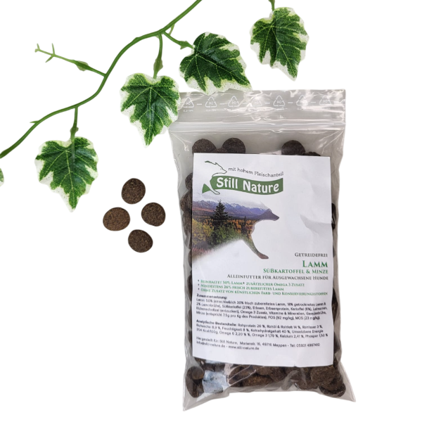Wenn Du Deinen Hund normalerweise mit Frischfleisch ernährst, ist dieses Trockenfutter aus Lamm mit Süßkartoffeln und Minze die perfekte Wahl für Dich! Das Trockenfutter lässt sich leicht lagern und kann ganz bequem auf Reisen mitgenommen werden! Dadurch ist es eine praktische Alternative zu Barf Futter und bietet Deinem Vierbeiner dieselben natürlichen Nährstoffe. So ist dieses Trockenfutter aus Lamm mit Süßkartoffeln und Minze nicht nur gut für die Gesundheit und Verdauung Deines Hundes, sondern sorgt auch für ein schönes glänzendes Fell!