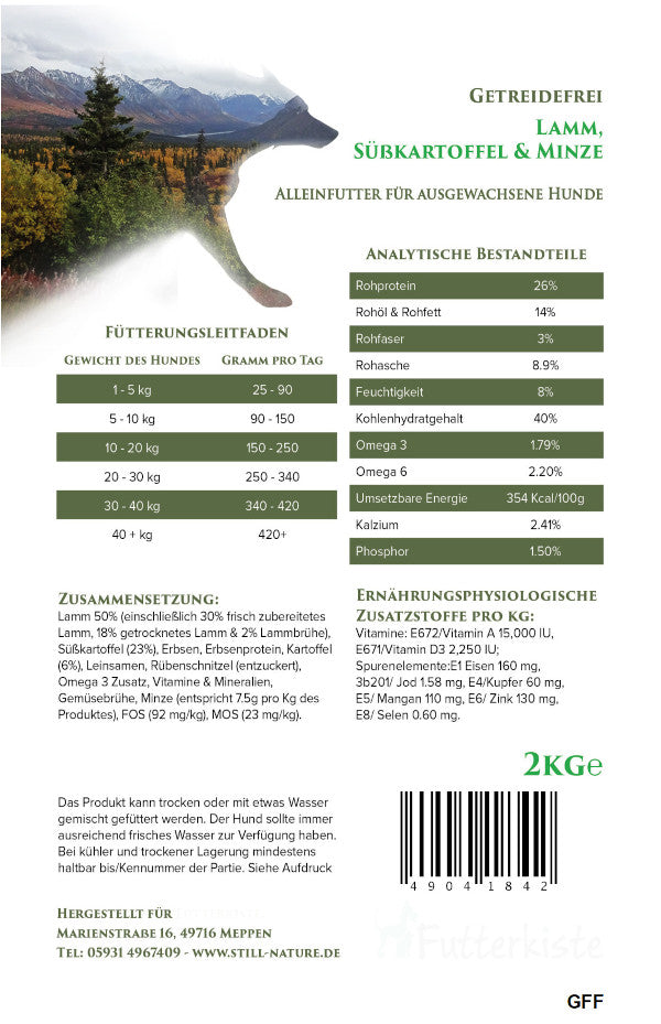Dieses natürliche Trockenfutter aus Lamm mit Süßkartoffeln und Minze versorgt Deinen Hund mit allen wichtigen Nährstoffen und bietet ihm eine gesunde Ernährung!